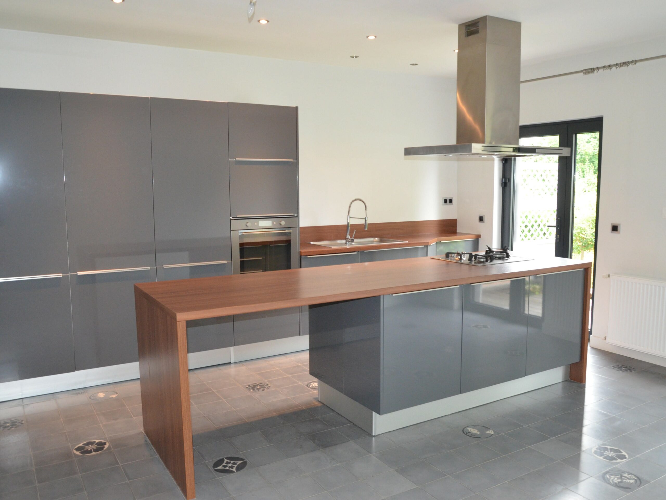 L’extension, pensée comme une continuité naturelle de la maison, accueille une grande cuisine avec îlot et salle à manger ouverte sur le jardin.