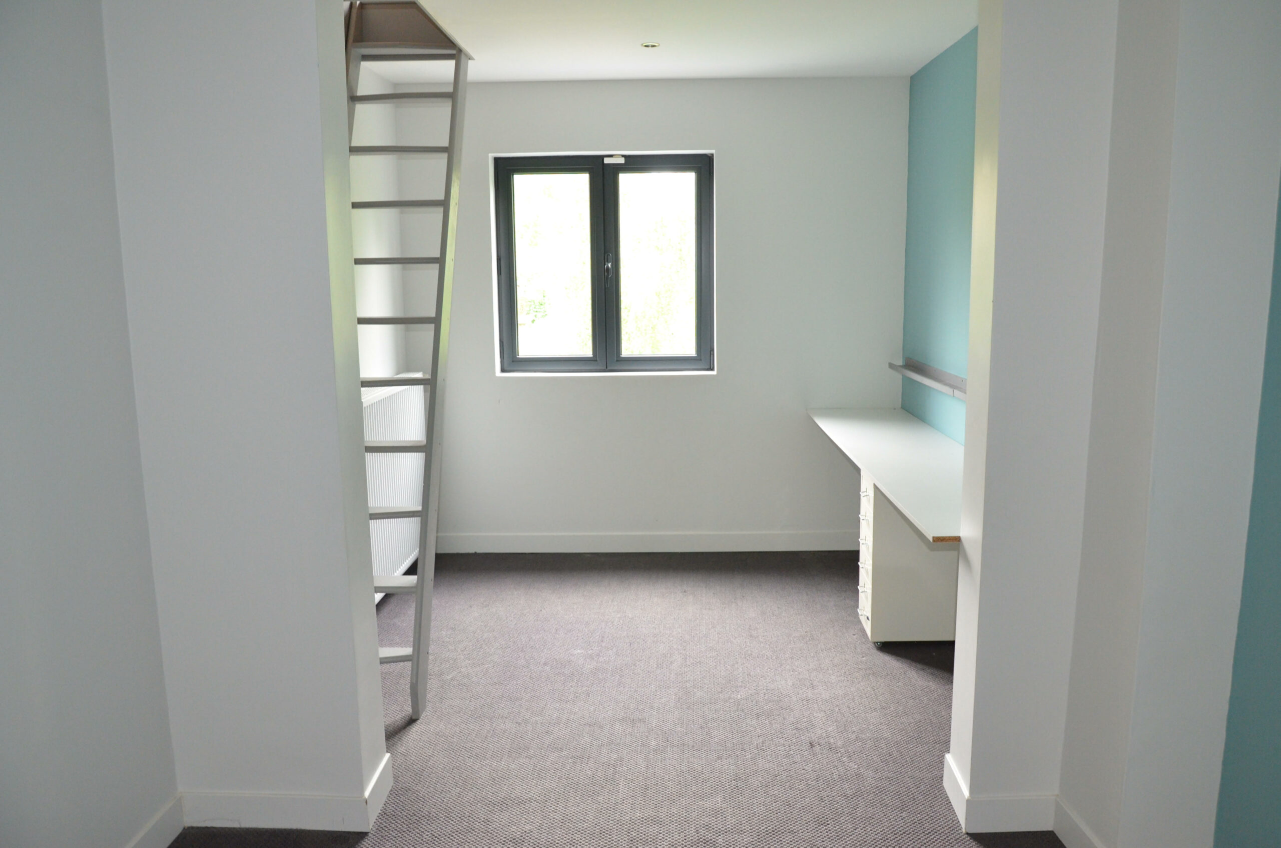 À l’étage, les chambres d’enfants ont été repensées sur deux niveaux, avec des couchettes en mezzanine éclairées par des lucarnes, offrant un espace distinct dédié au jeu et au travail.