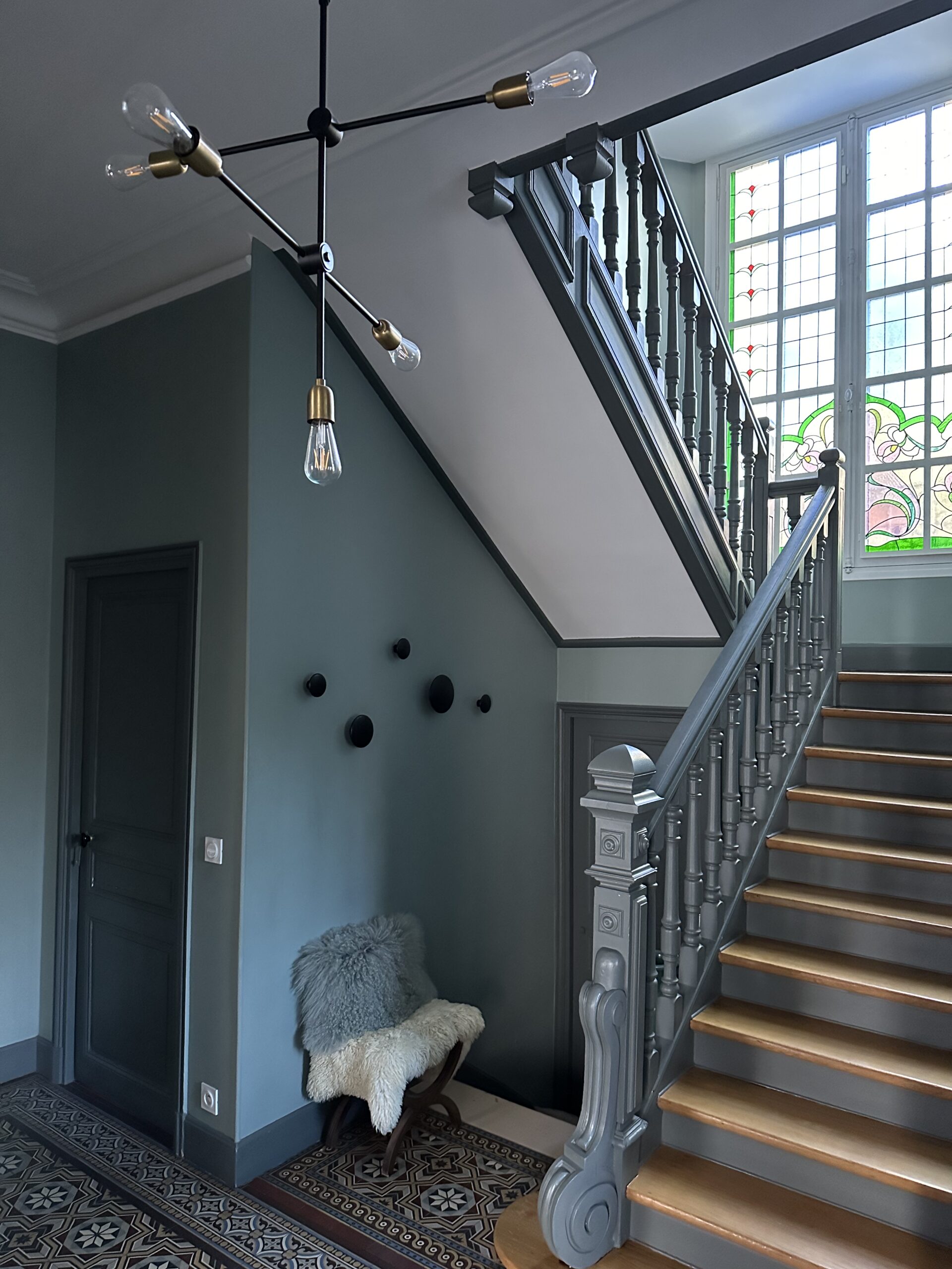 Le projet a consisté à réinventer les espaces tout en préservant l’âme du lieu. Moulures, parquets, carreaux de ciment et vitraux d’origine ont été restaurés et sublimés par des matériaux nobles et des finitions contemporaines.