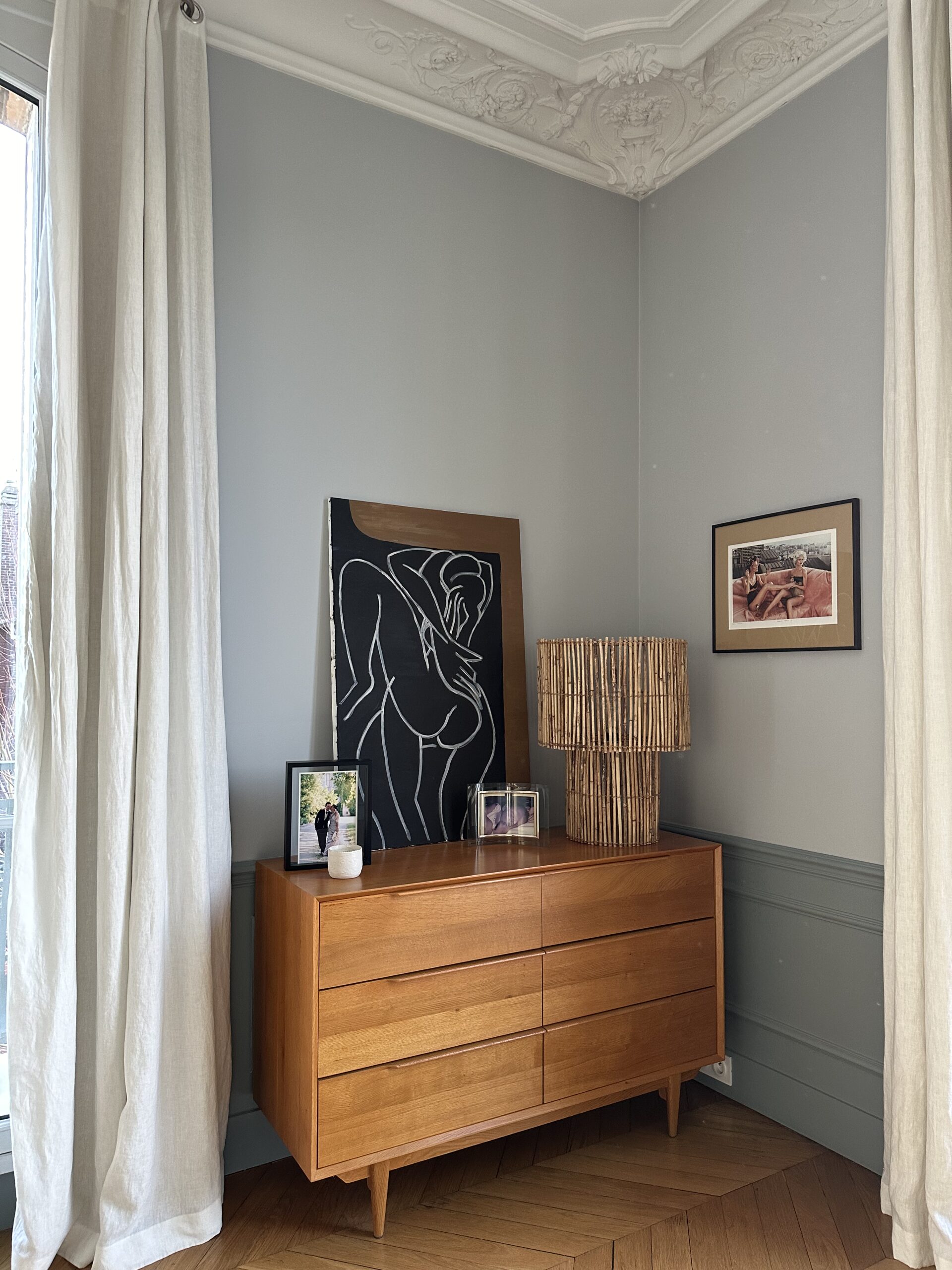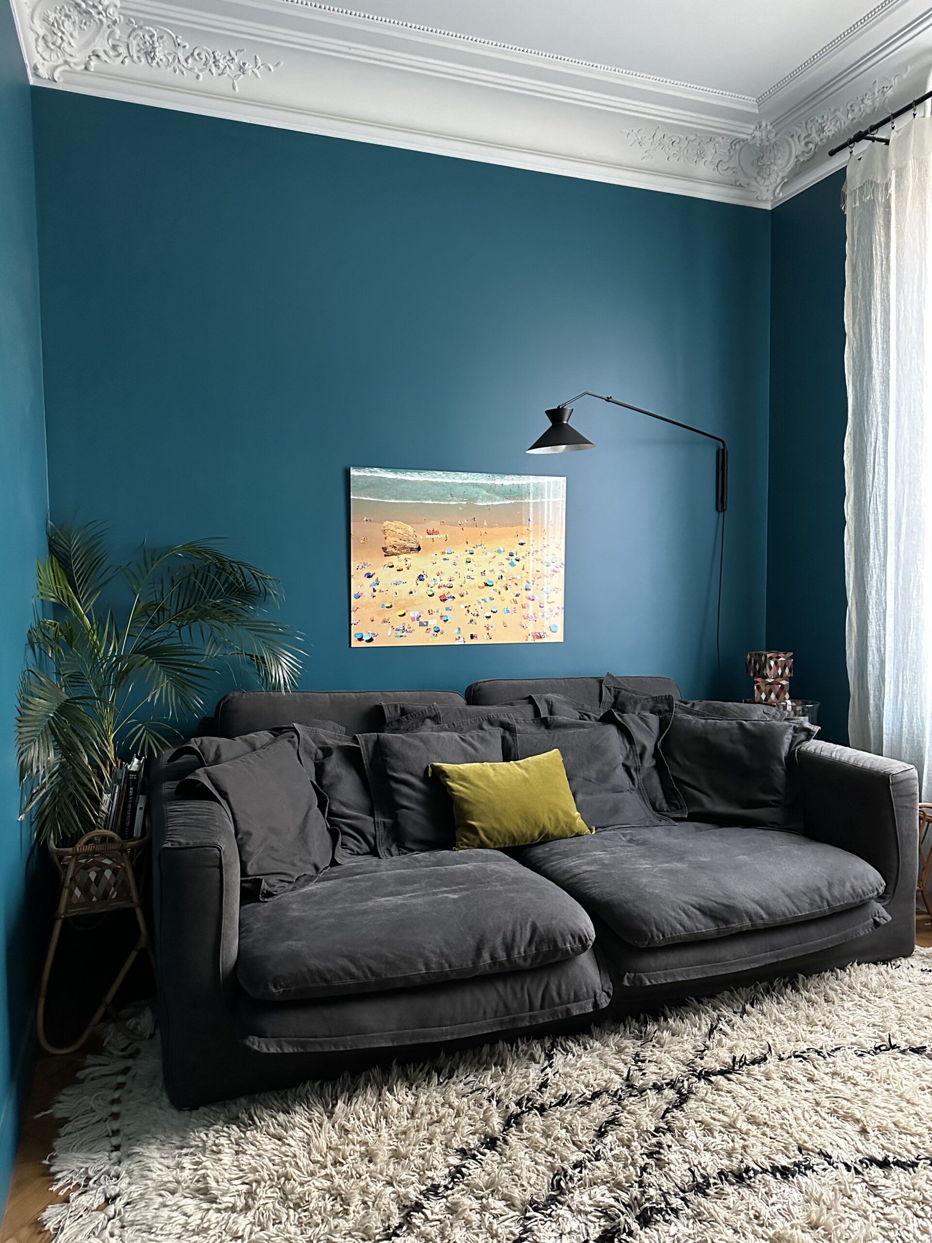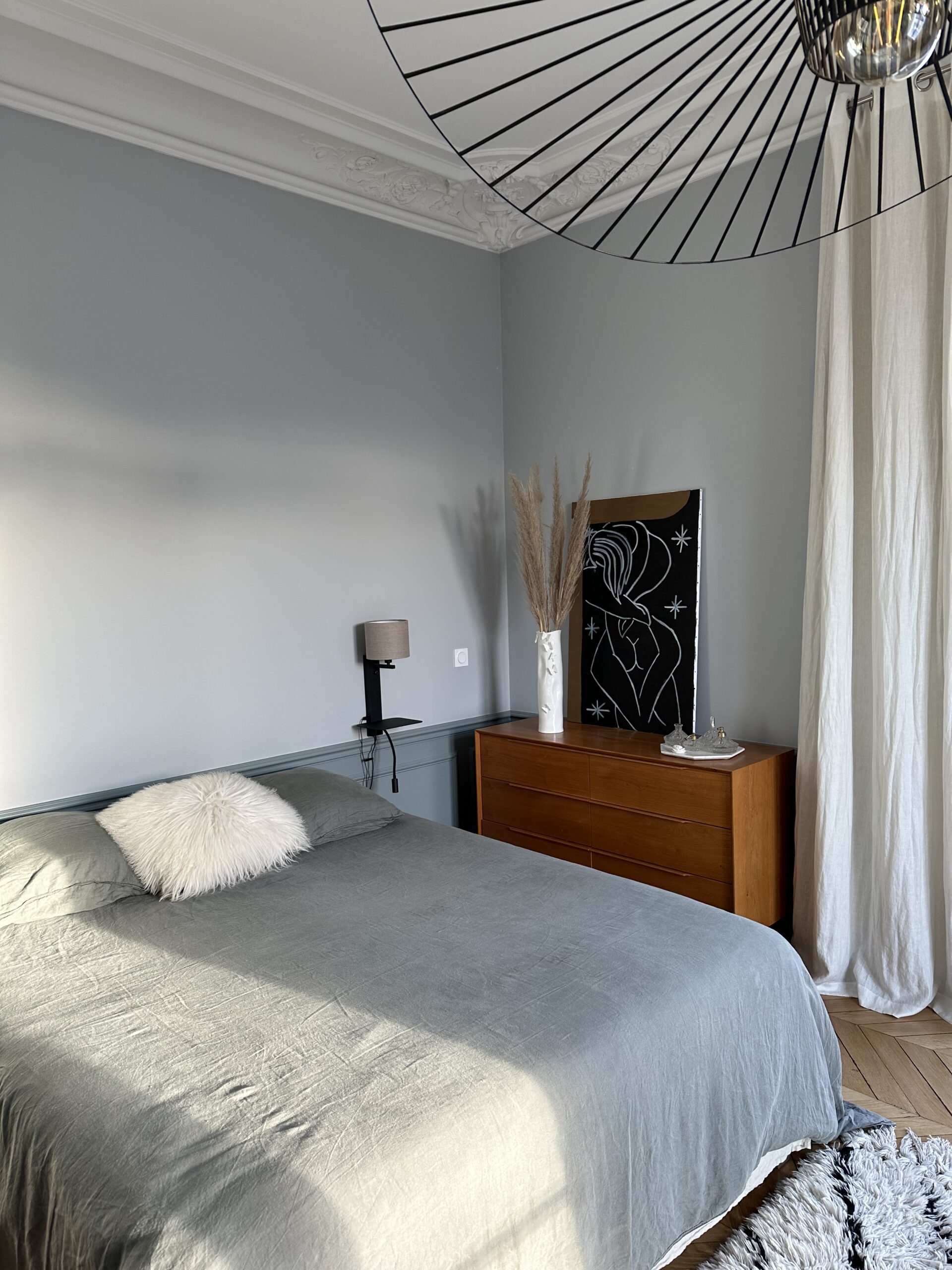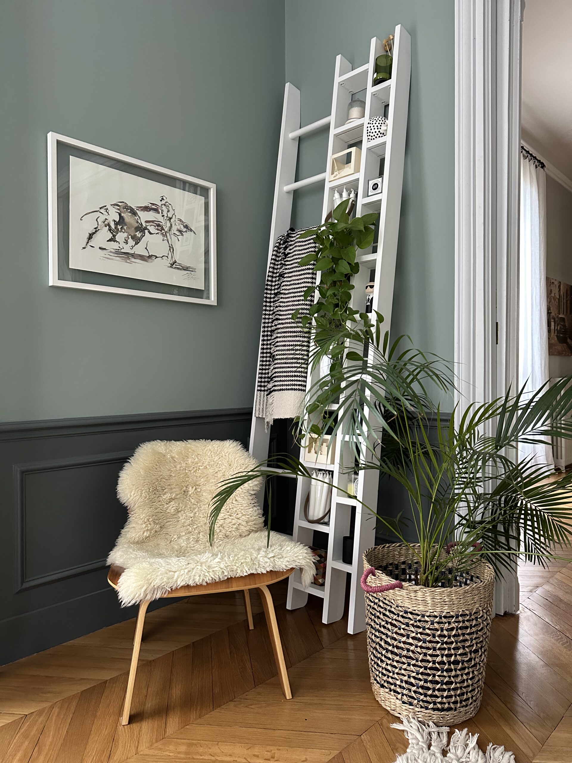 Une palette audacieuse de verts et de bleus rythme les pièces, alliant élégance, modernité et respect du patrimoine.